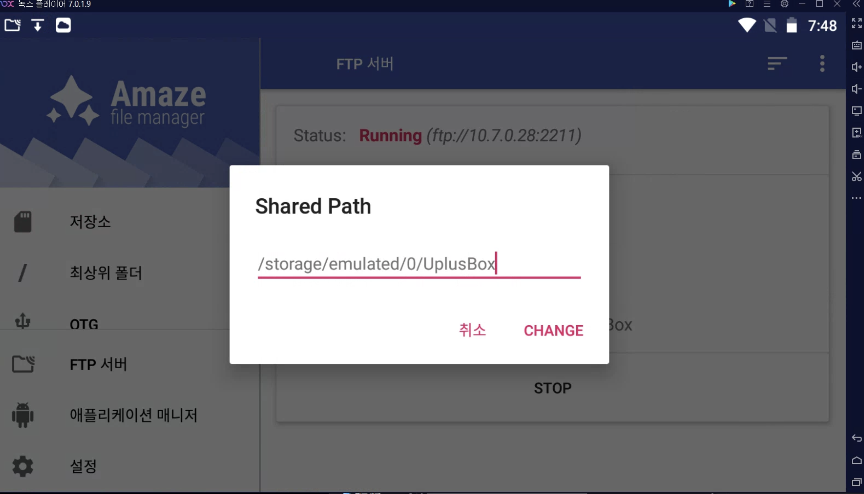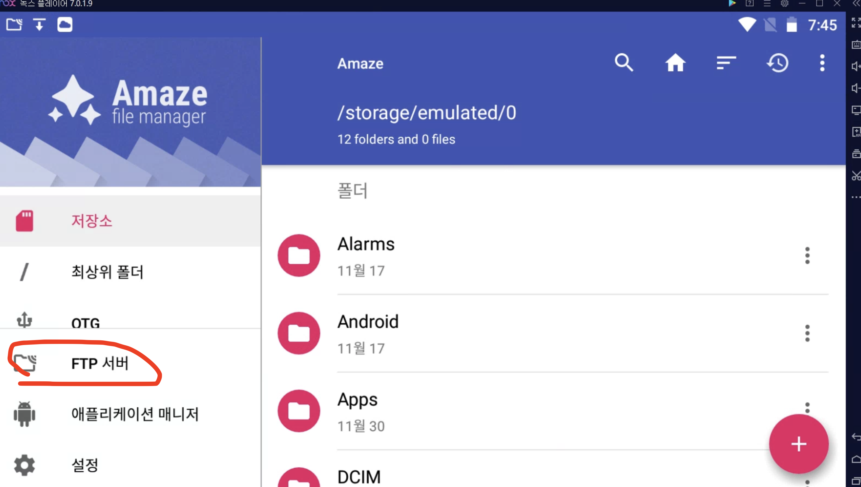 FTP 서버가 있음. 이걸 띄워서 알 FTP 등 FTP 툴로 녹스에 받은 파일을 데스크탑으로 받을거임.