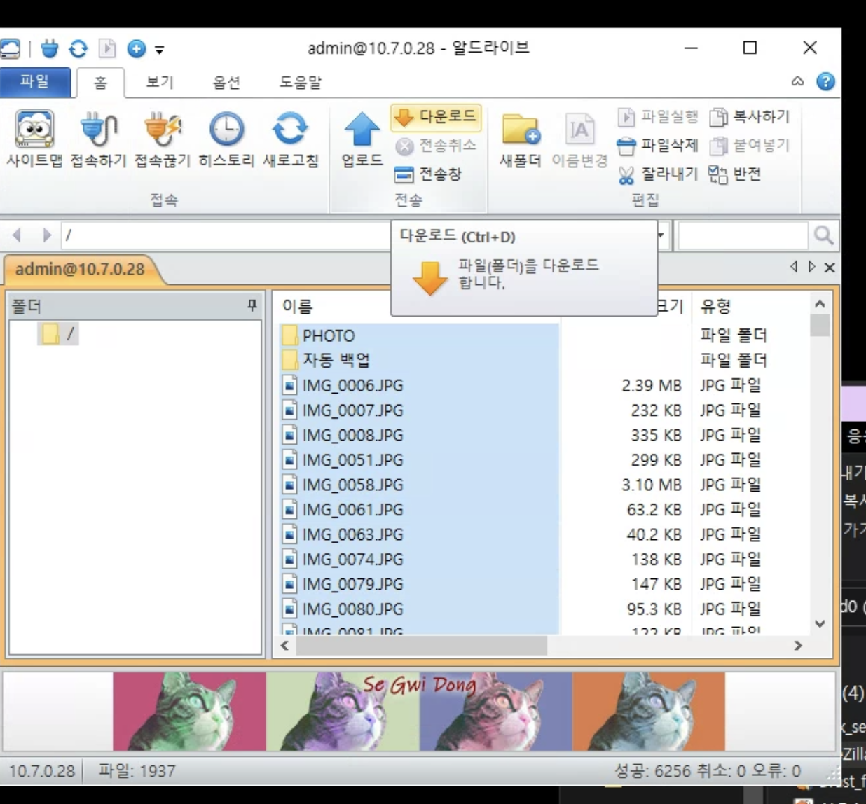 (위 그림 경우 ftp://10.7.0.28:2211) 로 접속 가능하다.