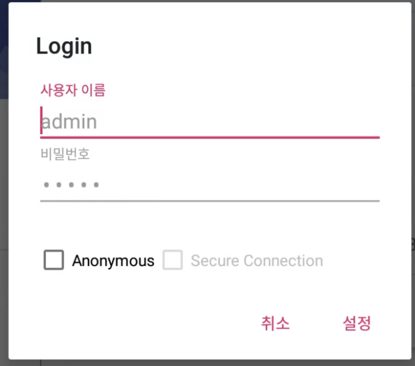 로그인 패스워드는 admin / admin 하든가 아무거나 편한걸로.